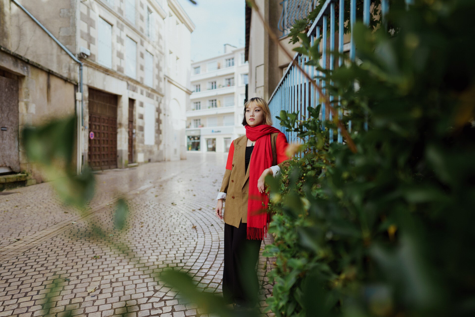 Une coupe mi-longue pour elle et pour lui. Elle s'associera parfaitement avec un col roulé, une capuche, un t-shirt. Elle s'associera simplement avec tout. Sa touche de rouge habillera et pimpera une tenue discrète. Osez-la, portez-la, elle ne demande que ça.